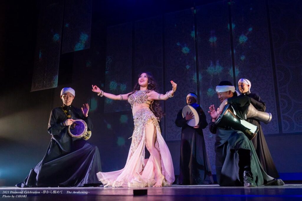 旋律が描く曲線に身を任せ、楽器が奏でる「タラーブ(高揚感)」を全身で表現します。奏者の即興(タクシーム)に対し、私もまた即興で応えていきます。それは、お互いの呼吸を読み合う、美しくも濃密な「愛の対話」そのものです。